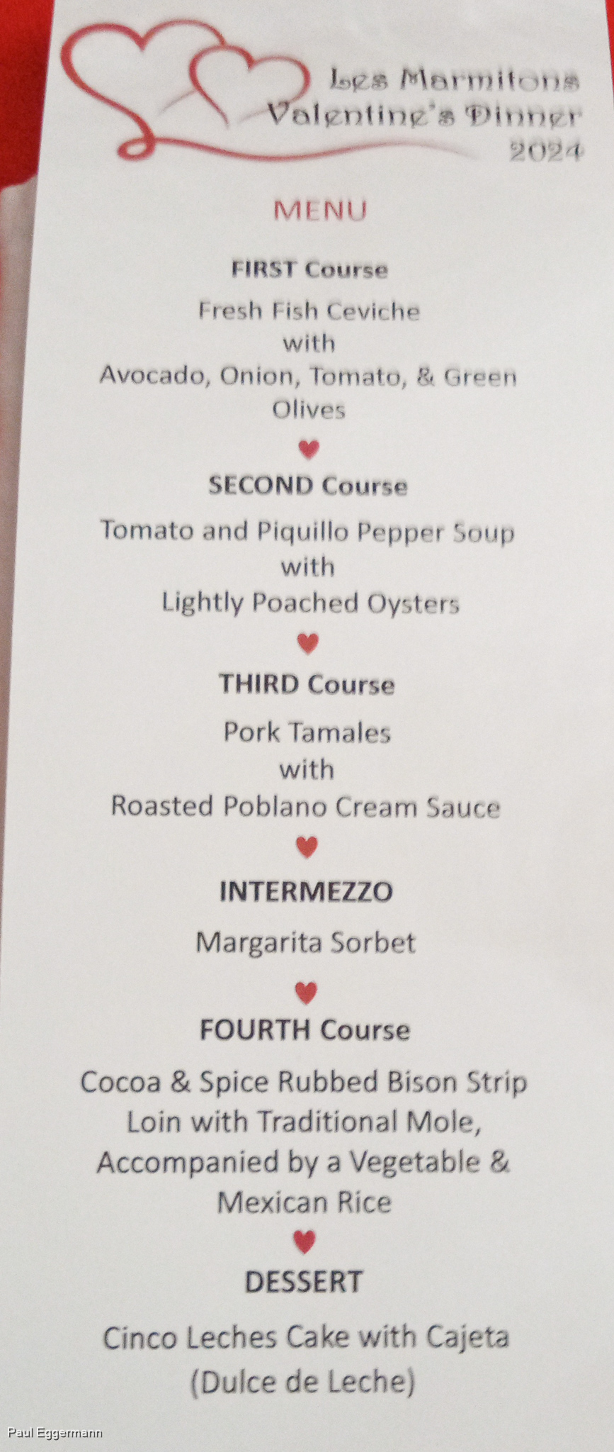 Lynn made up the menu for us Copyright Paul Eggermann
