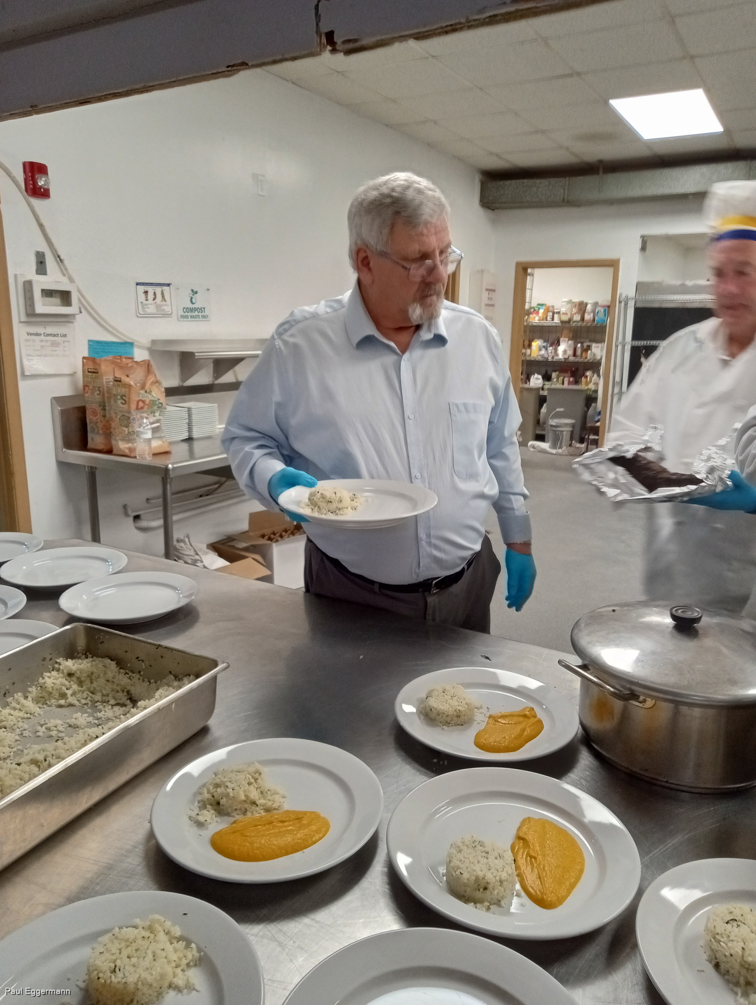 Pete plated the soup with help from Stephen Copyright Paul Eggermann