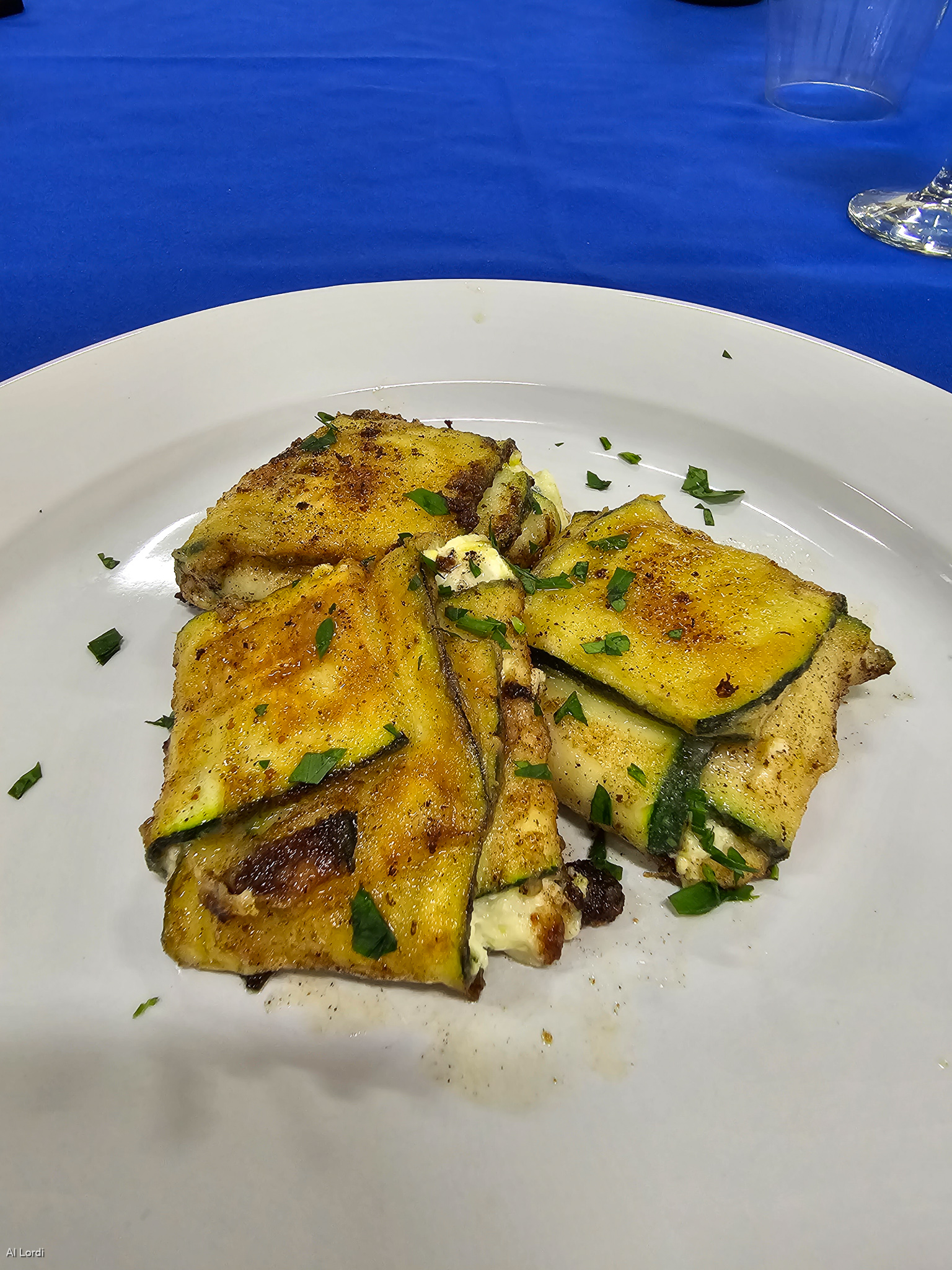 2nd COURSE: SQUASH CORN & CRAB STUFFED RAVIOLI- THE SQUASH IS SUBSTITUTED FOR THE PASTA-VERY INTERESTING DISH Copyright Al Lordi