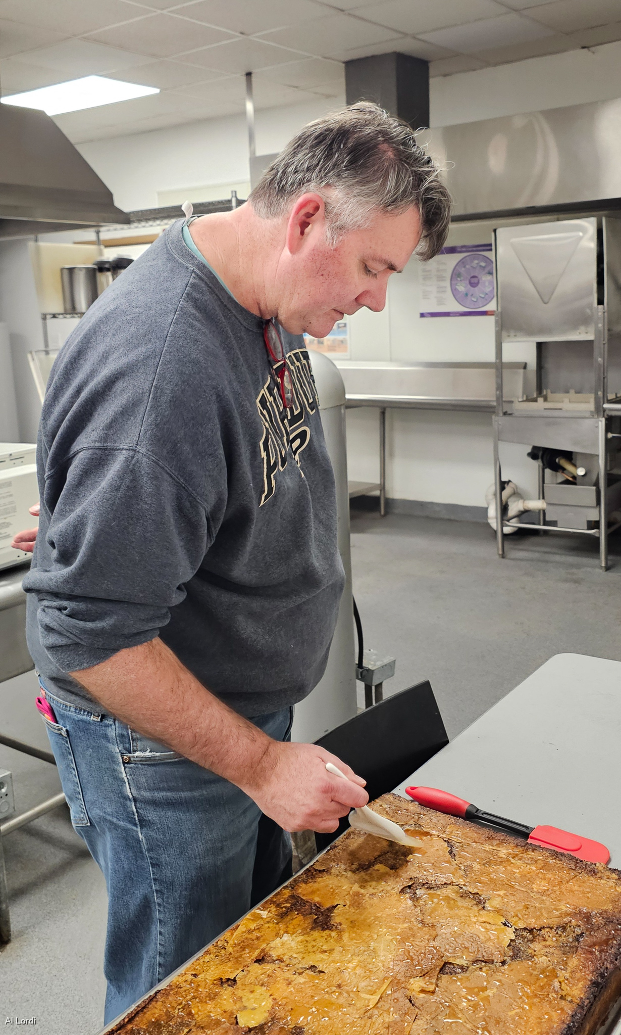 Andre checks the dessert.
