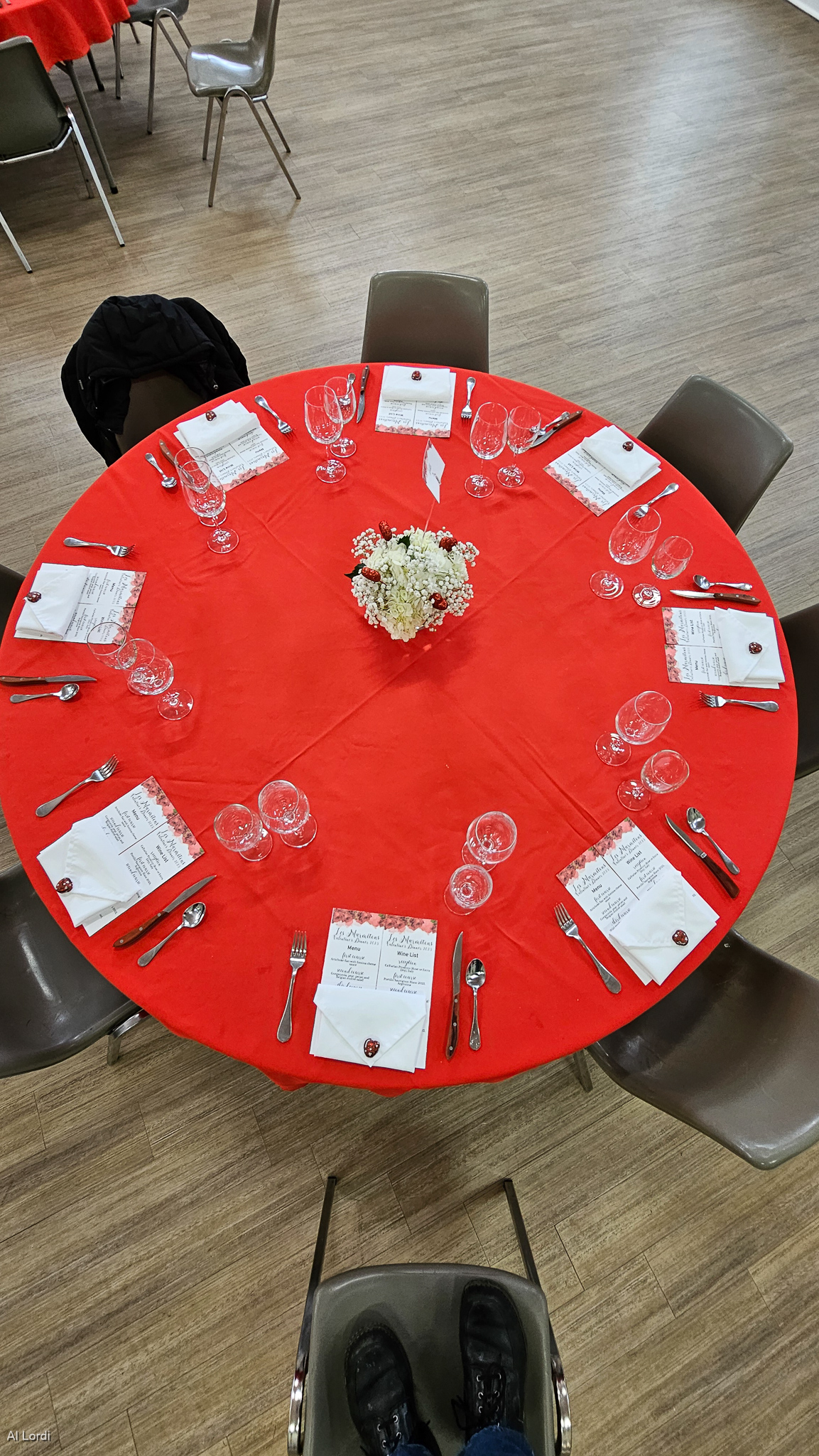 - One of the tables ready for dinner.